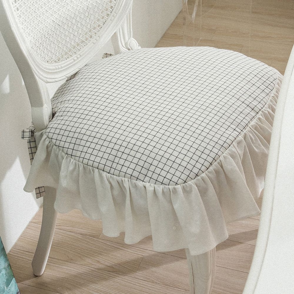 식탁의자방석 식탁의자커버 린넨 프릴 빈티지 체크 방석