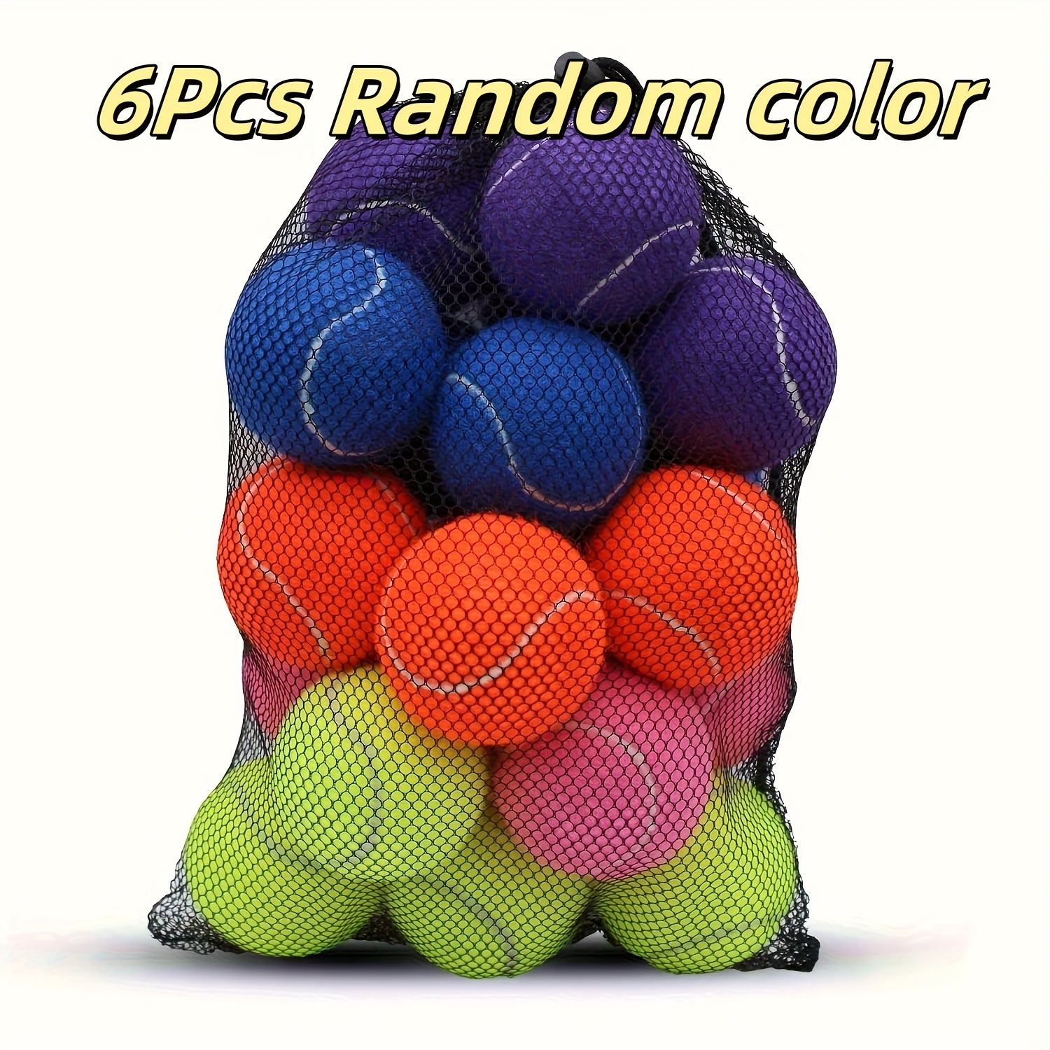 TEMU 6개입 고탄력 훈련용 테니스 공 세트 - 내구성이 뛰어난 천연 고무 및 펠트 재질, 초보자 훈련에 적합, 재사용 가능한 메시 가방 포함, 다양한 밝은 색상으로 제공