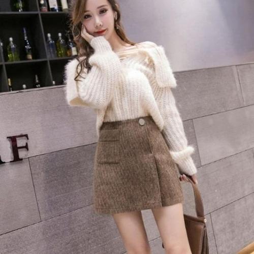 [옷자락]여자 겨울 모직 코듀로이 골덴 속기모 치마 바지