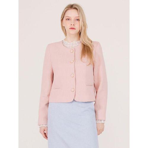 지센 여성 봄 린넨혼방 버튼업 라운드 자켓 LCJKP323
