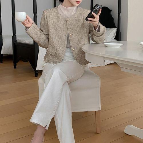 와칸다 가을 캐주얼 여자 여성용 아우터 톱 라운드 자켓 면마 린넨마 KKE3