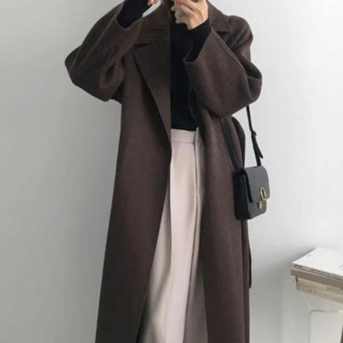 [엄지척]카라 허리끈 클래식한 디자인 여성 모직 롱코트_20225485_667501