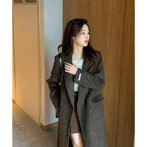 여성롱코트 여성 더블 단추 모직 롱코트 1P 간절기 심플 아우터