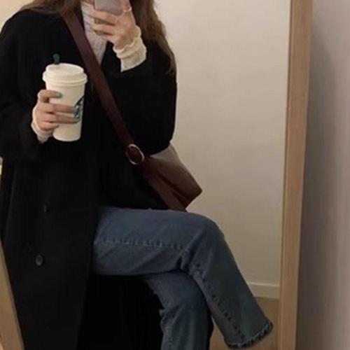 여성용 모직 롱 하프 추동 봄 로맨틱 가디건 코트 더블 카디건 양털 DUCHI3