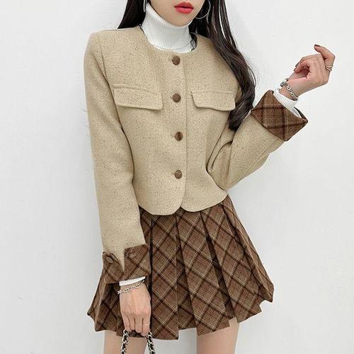 [조이너스]뒷단추 포인트 모직 체크 재킷 JAEW0WJK260