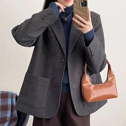 모몰라티 여성 프리미엄 루즈핏 캐주얼 데일리 모직 블레이저
