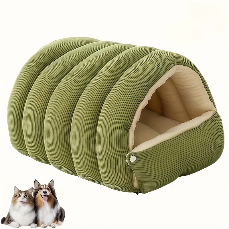 TEMU 아늑한 플러시 진정 동굴 침대 - 겨울용 따뜻한 후드 하우스, 탈착식 세탁 커버, 강아지와 고양이를 위한 부드러운 둥근 펫 베드, 라벤더, 세이지 그린, 화이트 실내 침구 (쉬운 조립)
