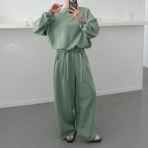 [셀러허브_여성트랜드패션]여자 오버핏 보트넥맨투맨 와이드핏 세트