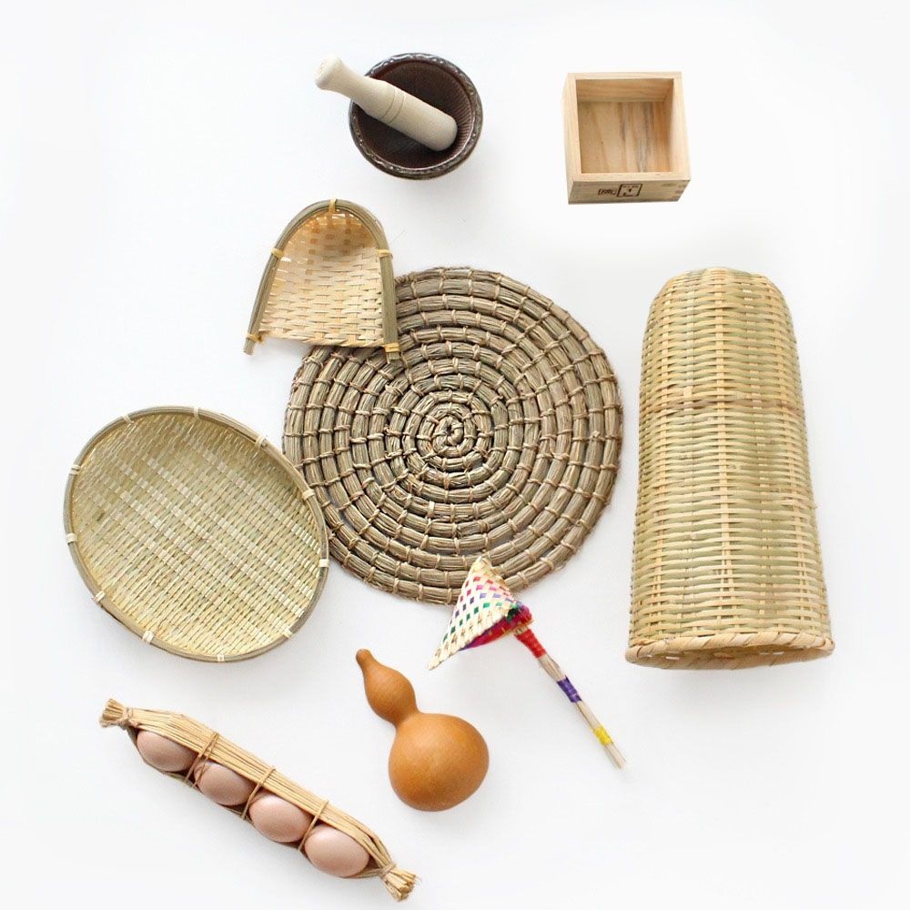 전통 주방 체험 세트 ( 한국기념품 용수 채반 됫박 깨갈이 절구 계란모형 복조리 미니키 )