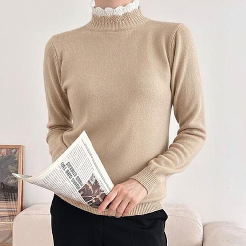 여성용 데일리 반폴라 스판 부드러운 긴팔 스웨터 니트 Knitted T-shirt H012