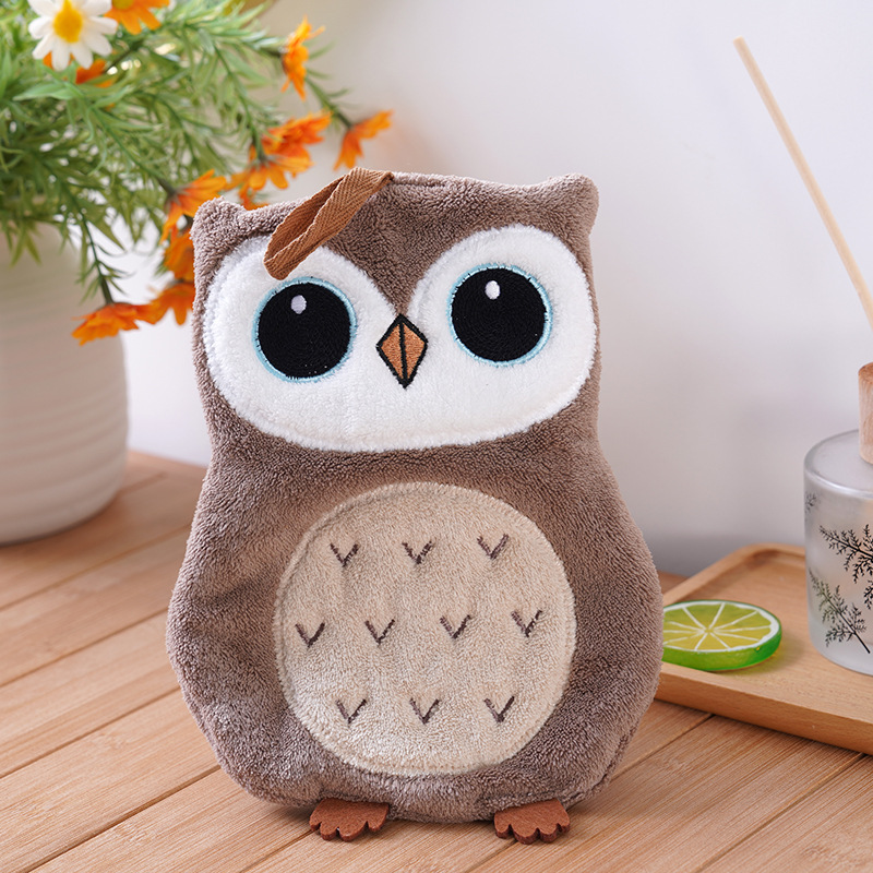 TEMU 신상 올빼미 시리즈 욕실 걸이 핸드 타월 | 털 빠짐 없음, 무취, 매우 부드러움, 코랄 플리스, 패브릭