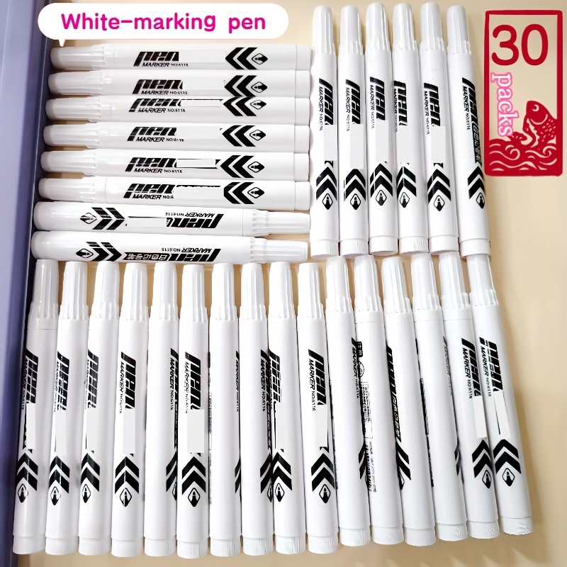 TEMU 30개입 화이트 마커, 번짐 없는 화이트 잉크 서명용 펜, 드로잉 및 낙서 용 브로드 팁 마커