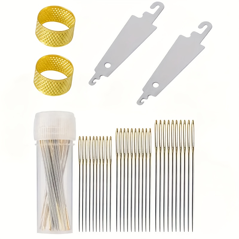 TEMU 34개 골드 컬러 테일 크로스 바늘 자수 바늘 세트, 자수틀 및 조절 가능한 손가락 보호대 포함 - 다양한 사이즈, 자수 및 바느질에 적합, 고품질 DIY 자수 도구