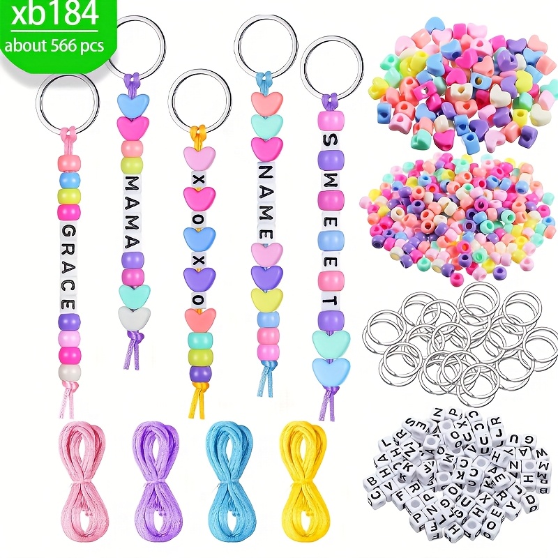 TEMU 약 566개 DIY 비즈 키체인 세트 - 조절 가능한 글자 하트 모양 비즈 키체인 재료, 다양한 색상과 디자인, 주얼리 만들기와 공예에 완벽, |생동감 넘치는 비즈 디자인|내구성 있는 공예 재료, 생일 파티 키체인 소품 선물