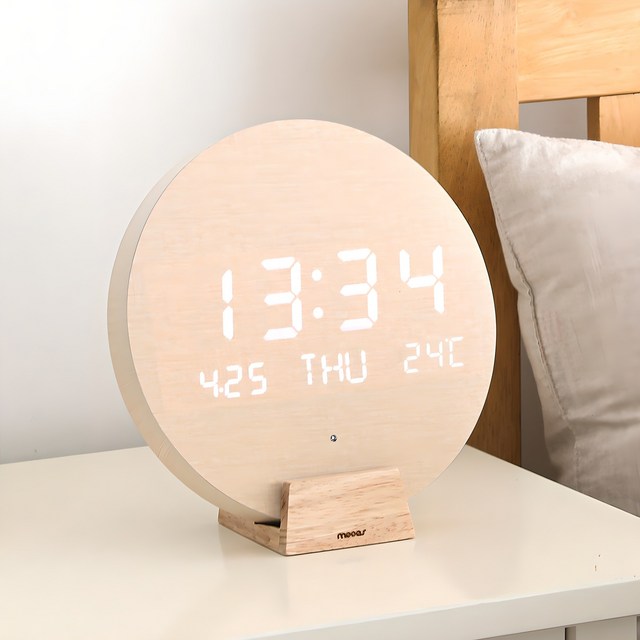 스러운 LED 시계 온습도 디지털 알람 무소음 무선 탁상 벽걸이 벽시계 대형