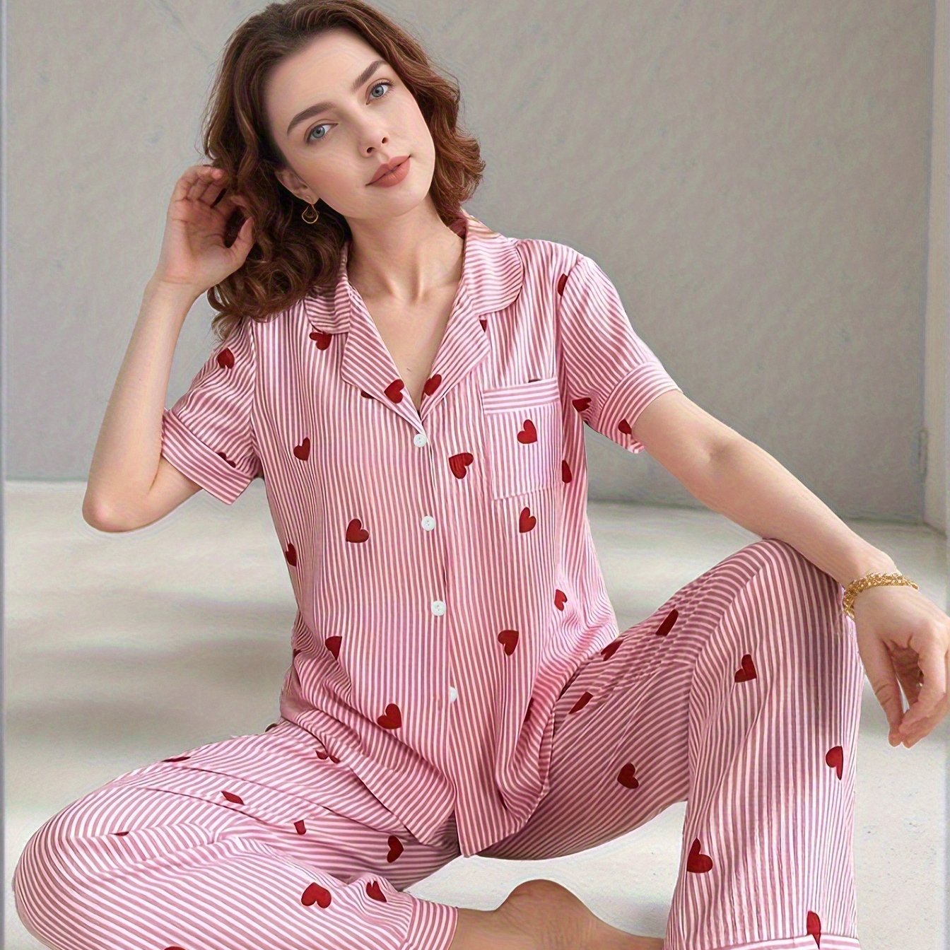 TEMU 여성용 하트 프린트 숏 롱 캐주얼 세트 - 가을 겨울용