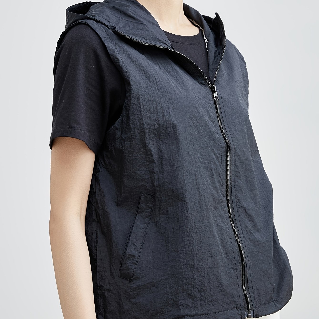TEMU 여성용 가벼운 후드 지퍼업 조끼, 아웃도어 캐주얼 포켓 루즈 슬리브리스 탑