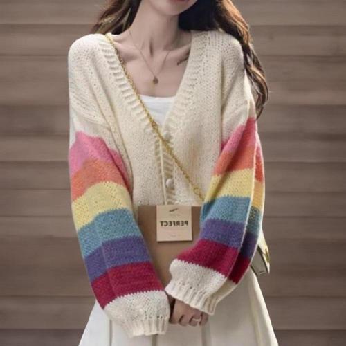 |CCJ6C02|여성용 데일리 여리핏 무지개 감성 니트 가디건