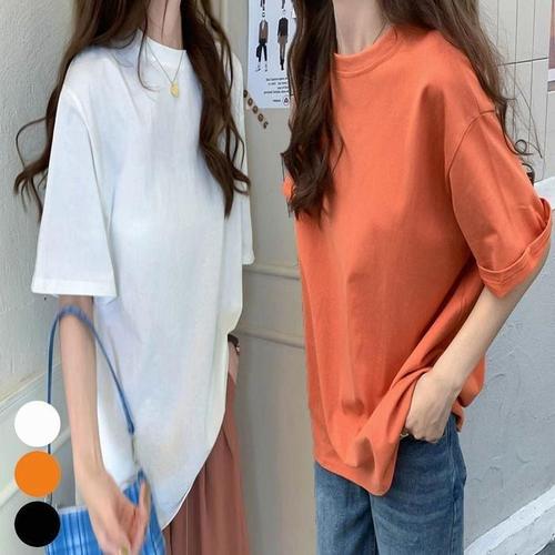 [라일리여성의류] Rly 라운드넥 깔끔한 무지 여자 이너 기본 반팔티 티