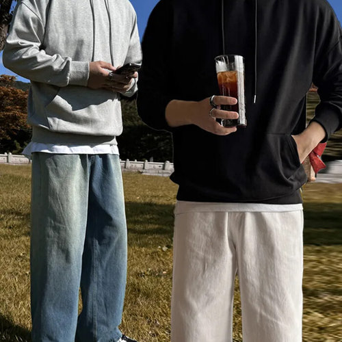 풀로우 특양면 남자 커플 무지 오버핏 후드티