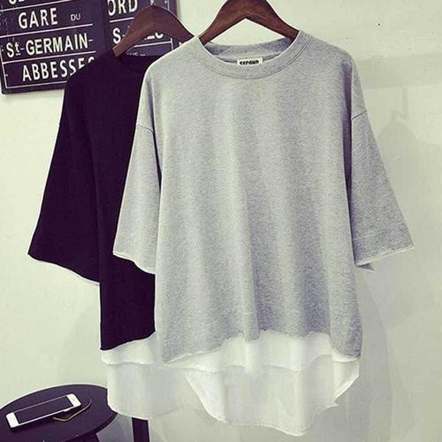 [굿쇼핑몰_의류]라운드넥 2컬러 여성 레이어드 무지 7부 반팔 티셔츠