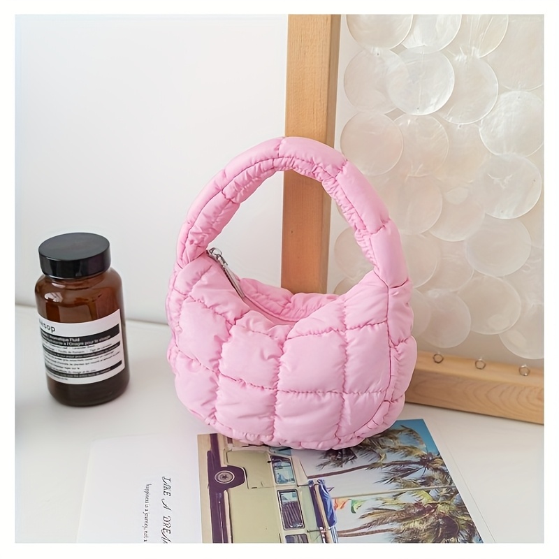 TEMU 여성을 위한 새로운 가을/겨울용 부드럽고 귀여운 구름 모양 패딩 크레센트 클러치, 부드러운 스타일의 다운 재킷 가방, 겨울을 위한 에너지 있는 소형 핸드백, 데일리 출퇴근을 위한 심플한 Ins 스타일, 산책 및 쇼핑에 적합.