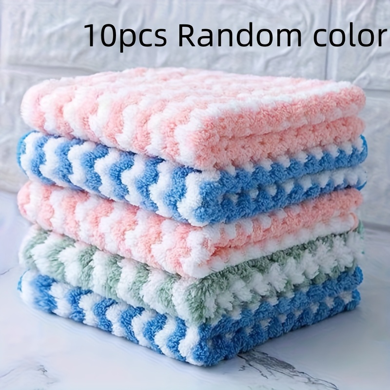 TEMU 10pcs 초저감성 마이크로파이버 주방 수건 - 오일 및 먼지 없는, 접시 및 카운터탑에 완벽한, 쉬운 청소, 현대 스타일, 사각형, 손세탁 전용, 파란색, 핑크, 녹색 줄무늬