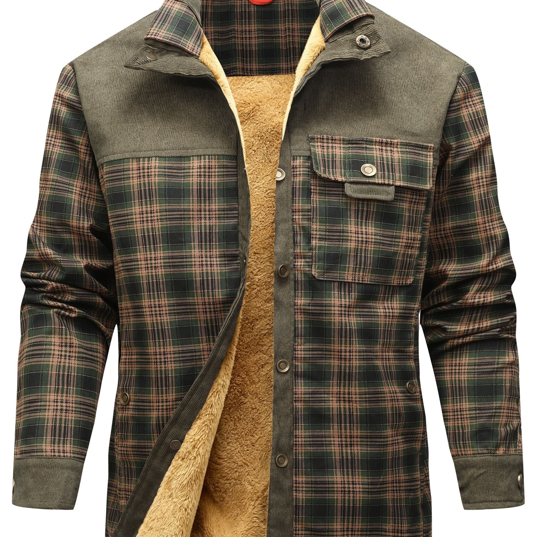 TEMU 남성용 겨울용 두꺼운 플리스 쉐르파 안감 코듀로이 체크 버튼 플란넬 셔츠 재킷