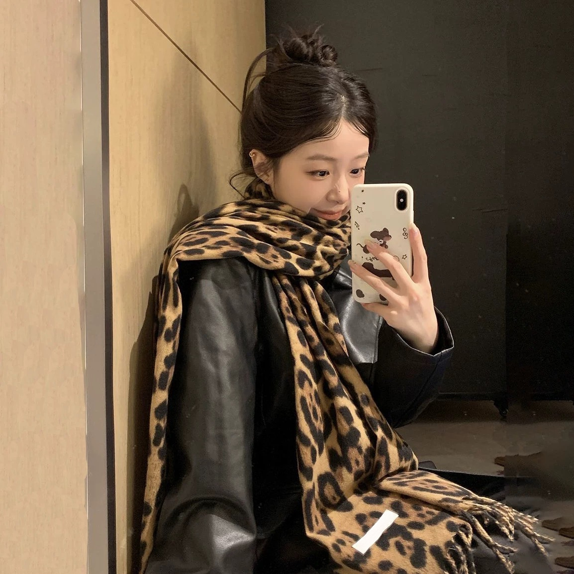 TEMU 여성용 1개 프린트 스카프 - 고급 소재의 두꺼운 태슬 숄, 가을 & 겨울용 우아한 액세서리, 유럽 & 미국 스타일 다용도 패션 선물, 머리카락용 스카프, 세련된 솜씨의 겨울 보온 필수품