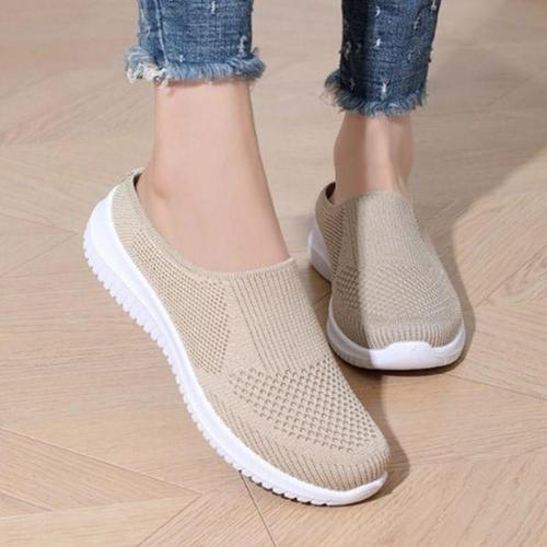 [신상오픈런]여성 심플 패브릭 니트 뮬 슬립온 단화