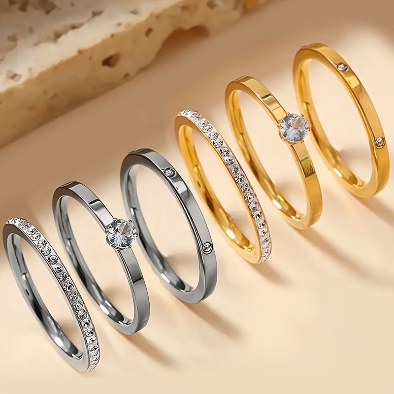 TEMU 6개 세트 304L 스테인리스 스틸 링 세트 - 우아한 레이어드 스택 가능한 웨딩, 기념일, 발렌타인데이, 다양한 스타일 (심플/플레인) 반지, 생일, 캐주얼 의상, 그녀를 위한 선물, 내구성 강하고 합리적인 가격, 중국어/영어 호환, 청소년용