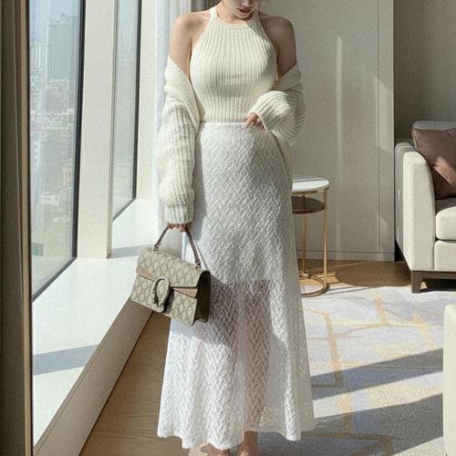 [옷자락]여자 롱 시스루 미니 속치마 니트 원피스