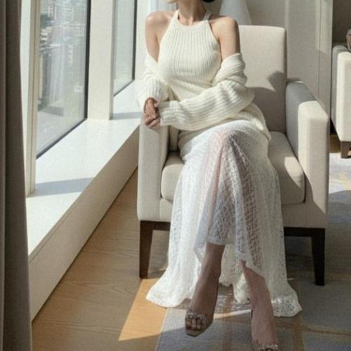 [옷자락] 여자 롱 시스루 미니 속치마 니트 원피스