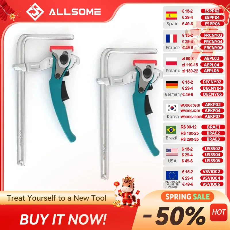 Allsome 알루미늄 합금 퀵 래칫 테이블 클램프, MFT 테이블 및 가이드 레일 시스템용 레일 클램프, 160mm 클램핑 범위, 2 개