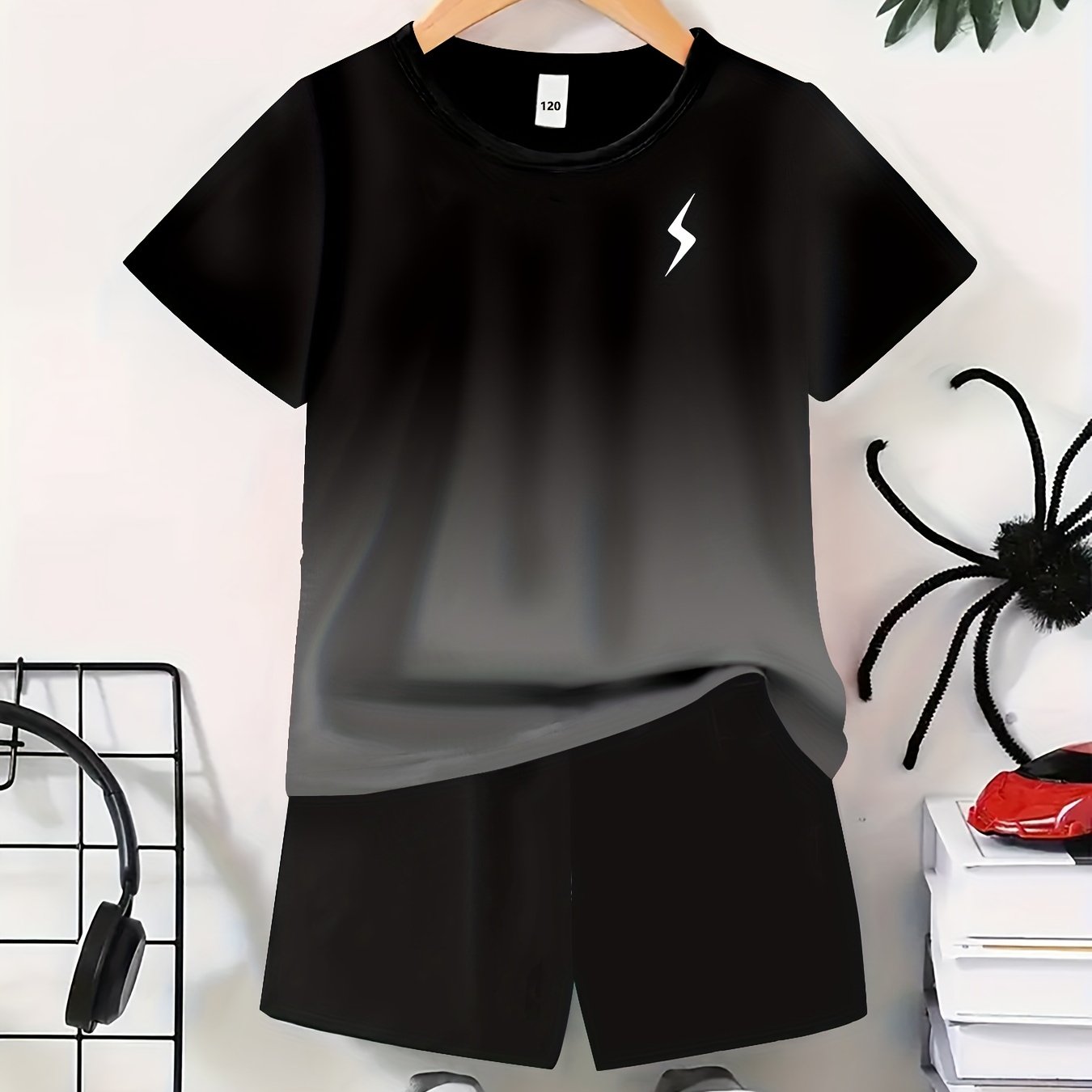 TEMU 청소년 패션 반바지 세트, 반팔 티셔츠와 루즈핏 반바지를 포함한 투피스 의상, 봄, 가을, 여름용, 스타일리시한 야외 캐주얼 세트, 남아용, 야외용, 십대용