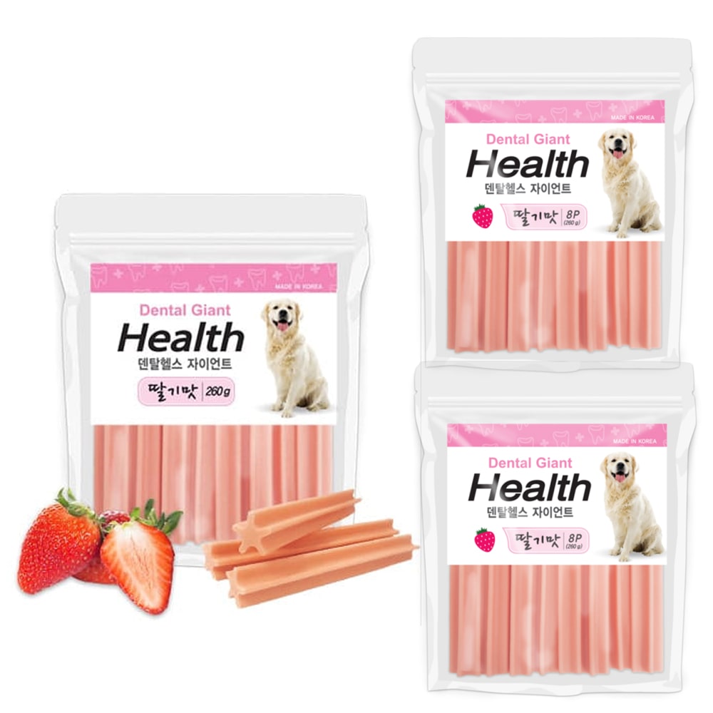 덴탈헬스플러스 자이언트 딸기맛 260g 3개묶음 대형견 개껌