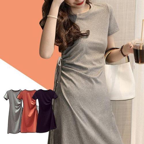 [모노무드]LMO 데일리 미니사이즈 미니드레스라운지웨어 휴양지 하프슬리브 스테디 라운드칼라