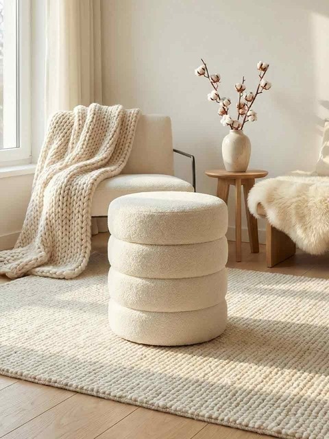 [누울랑] 마시멜로우 수납 스툴 의자 부클레 화장대 미니 원형