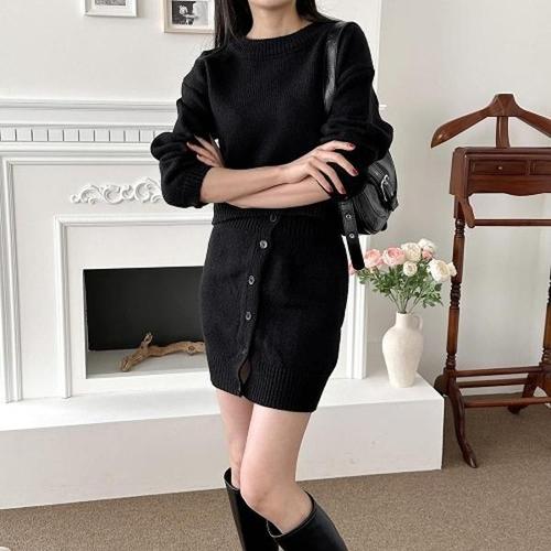 [엄지척]버튼 미니 스커트 투피스 니트 세트 LL-S113_19950163_667501