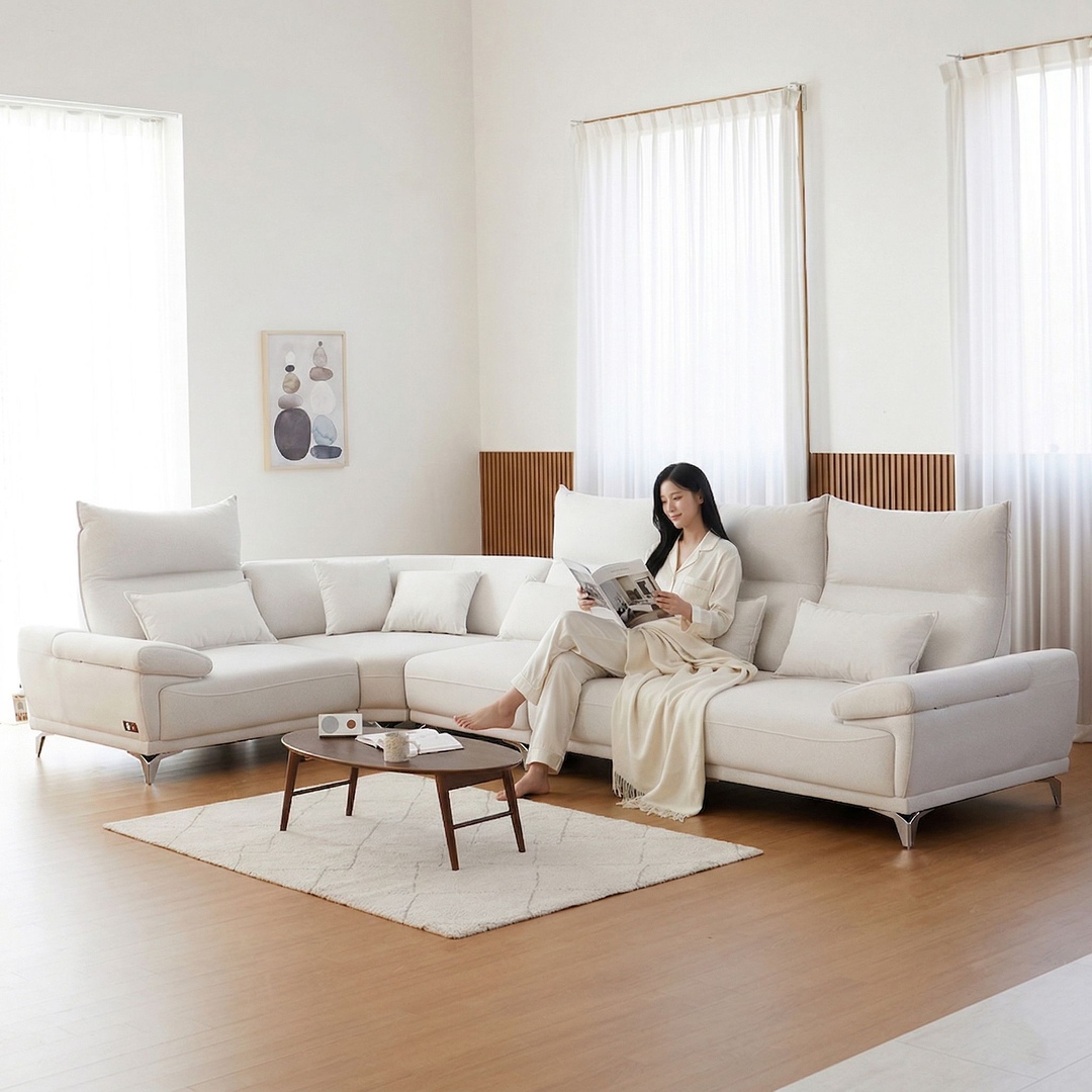 [쿠션 증정] 릴리 코모도 패브릭 모듈 6인용 팔걸이수납 코너형 소파