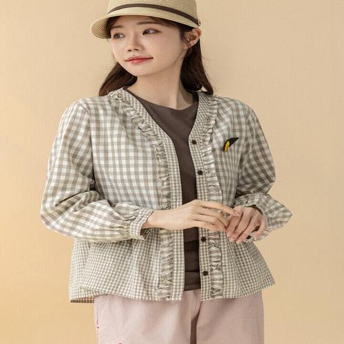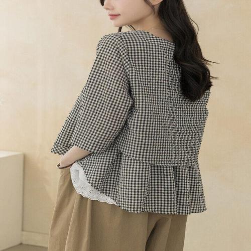 [디얼마미][디얼마미] 체크 오픈 프릴 블라우스 /마담 미시 중년 여성 빅사이즈 40대 50대