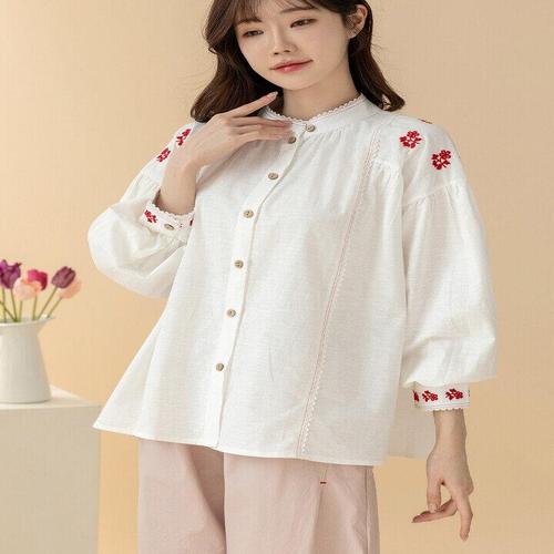 [디얼마미][디얼마미] 이나 꽃자수 린넨 블라우스 /마담 미시 중년 여성 빅사이즈 40대 50대