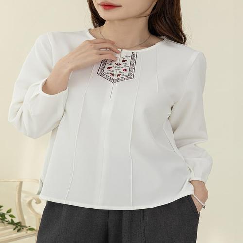 [디얼마미][디얼마미] 단아한 자수 블라우스 /마담 미시 중년 여성 빅사이즈 40대 50대