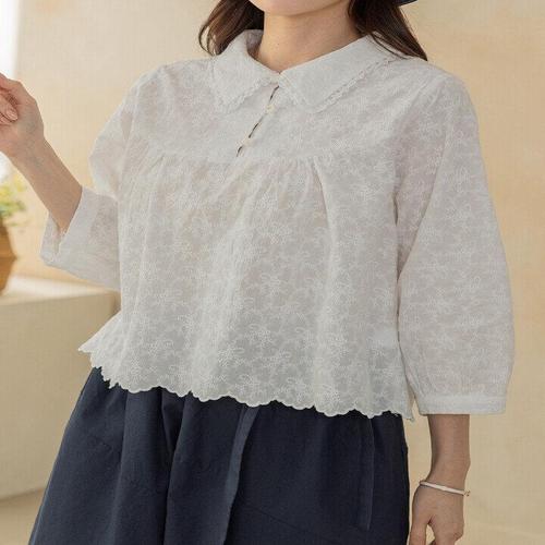 [디얼마미][디얼마미] 멜로닌 카라 린넨 블라우스 /마담 미시 중년 여성 빅사이즈 40대 50대