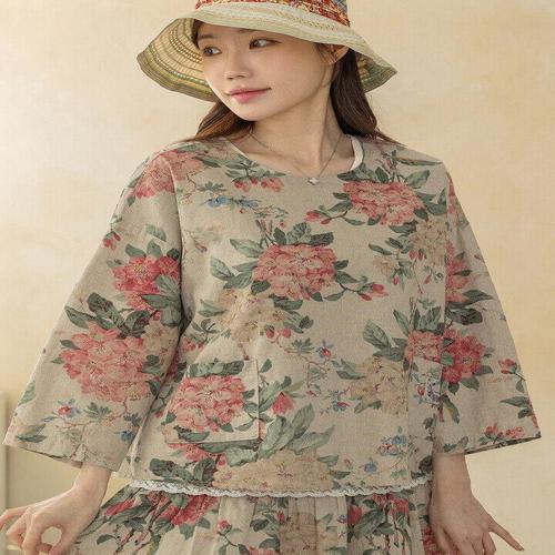 [디얼마미][디얼마미] 레플 꽃 린넨 블라우스 /마담 미시 중년 여성 빅사이즈 40대 50대