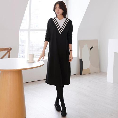 봄 가을 셔츠 배색 레이어드 빅사이즈 핀턱 맥시 롱 원피스 하객 모임 오피스룩 미시 엄마옷
