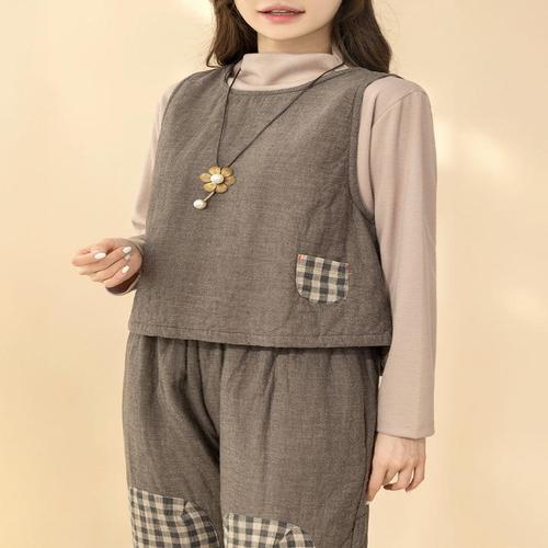 [디얼마미]밀크 체크 포켓 본딩 조끼 /마담 미시 중년 여성 빅사이즈 40대 50대