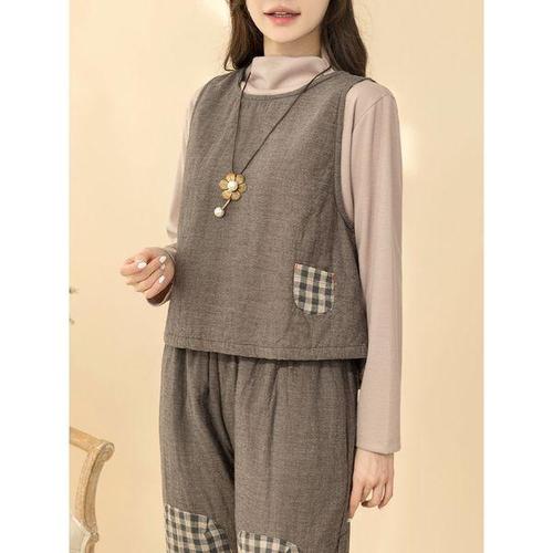 [디얼마미][디얼마미] 밀크 체크 포켓 본딩 조끼 /마담 미시 중년 여성 빅사이즈 40대 50대
