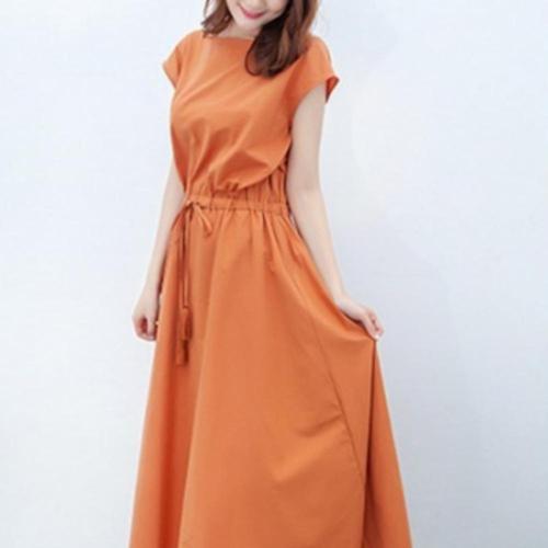 [오너클랜]인기상품 반팔 롱원피스 여름 린넨 면 스트링 원피스 [WFGHCE2_251018]