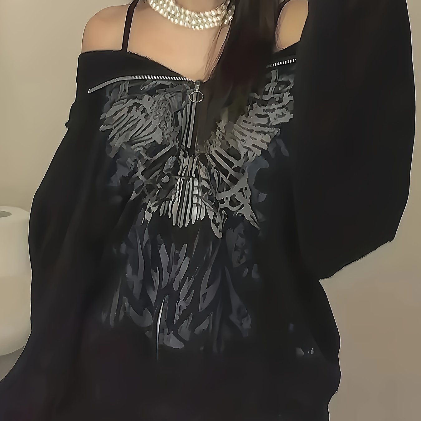TEMU YSK 다크 스타일 프린트 컬러 블로킹 긴소매 BF 스타일 루즈 캐주얼 후드 집업 가디건 스웨트셔츠 재킷 (2024년 봄/가을)